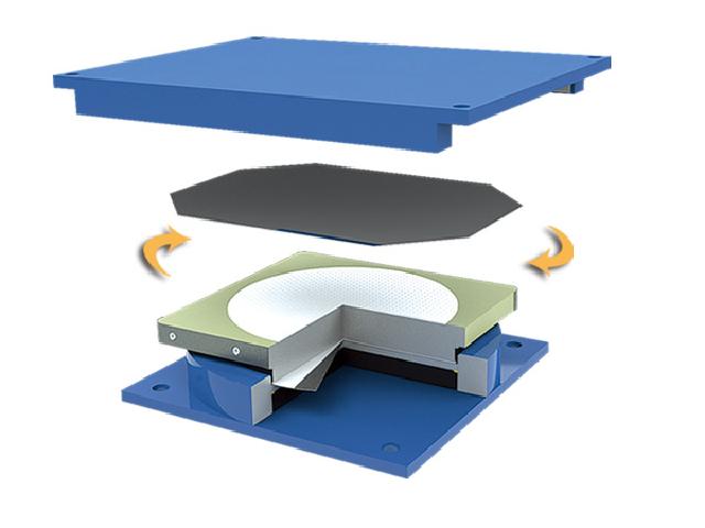 抗震盆式橡膠支座是在常規(guī)盆式橡膠支座基礎(chǔ)上增加了耗能滑板和阻尼圈。地震時(shí)上支座板和耗能滑板滑動(dòng)摩擦吸收能量,同時(shí)阻尼圈可緩解地震作業(yè)對底盆的水平?jīng)_擊,有效的保護(hù)橋梁建筑上下部結(jié)構(gòu)。平常通過中間鋼板和耗能滑板之間的靜摩擦力控制上部結(jié)構(gòu)變位。